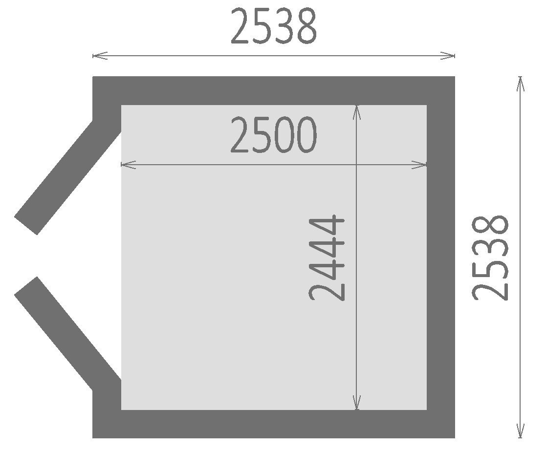 | Innenmaß Haus / größter Raum (B x T cm): | 244,4 x 250 cm |