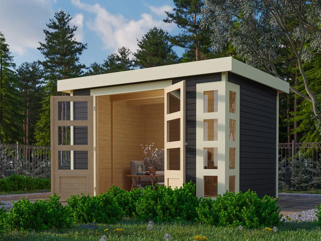 Mit diesem modernen Gartenhaus liegst Du voll im Trend. Dieses Gartenhaus überzeugt mit seinem modernen Design, das für einen echten Hingucker im Garten sorgt. Praktisch und kompakt passt es in jeden modernen Garten.