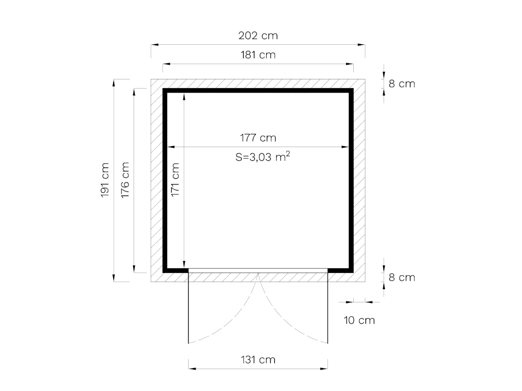 Die Wandstärke bezeichnet die Dicke der Wand. Je dicker die Wand, desto mehr Stabilität und Isolation bietet das Gartenhaus.