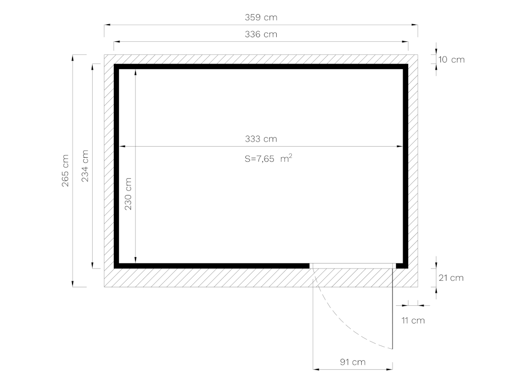 | Innenmaß Haus / größter Raum (B x T cm): | 333 x 230 cm |