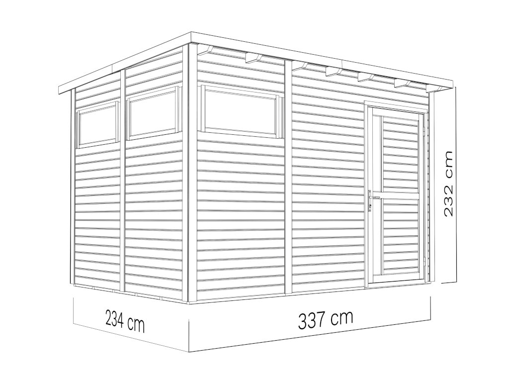 B x T x H: 337 x 234 x 232 cm, inkl. Boden
