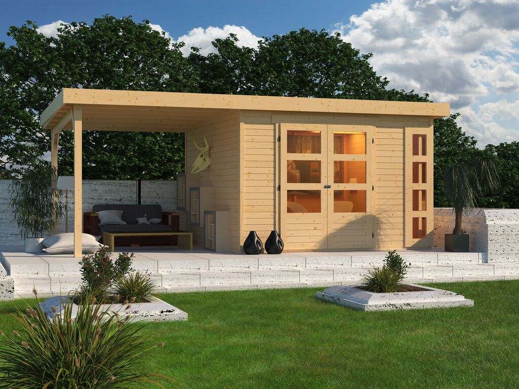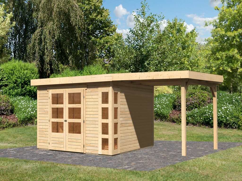 Gartenhaus SET Kerko 6 19 mm naturbelassen, inkl. 2,4 m Anbaudach