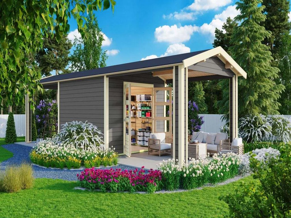 • Gartenhaus aus hochwertiger nordischer Fichte mit wasserabweisender Profilierung