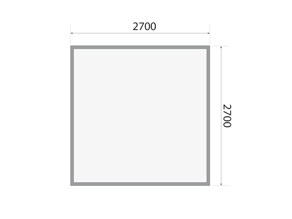 Die Grundfläche des Gartenhauses beträgt 7,84 m² mit einem Sockelmaß von 270 x 270 cm (B x T). Eine optimale Raumnutzung wird dank einer Firsthöhe von 216 cm gewährt.