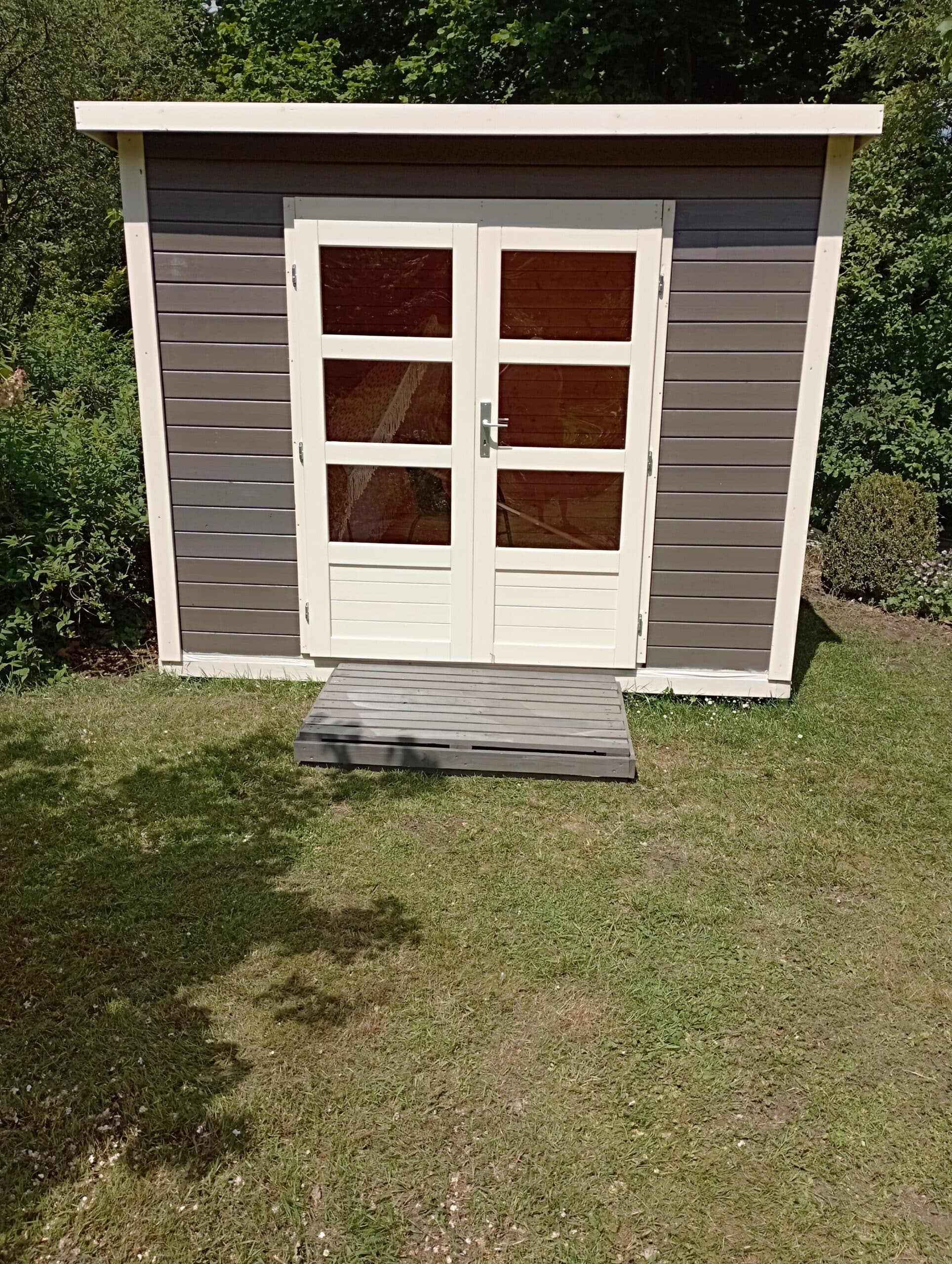 Tolles stabiles Gartenhaus, Farbe terragrau ist sehr schön. Der Aufbau ging recht gut ( mit geübten Händen )