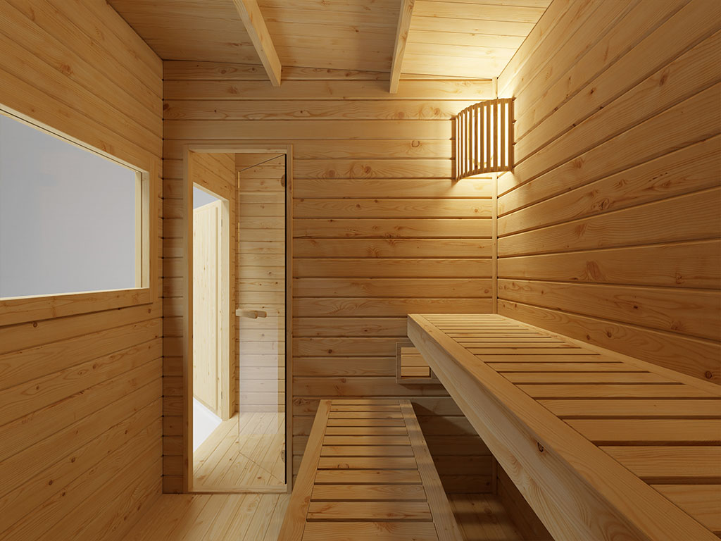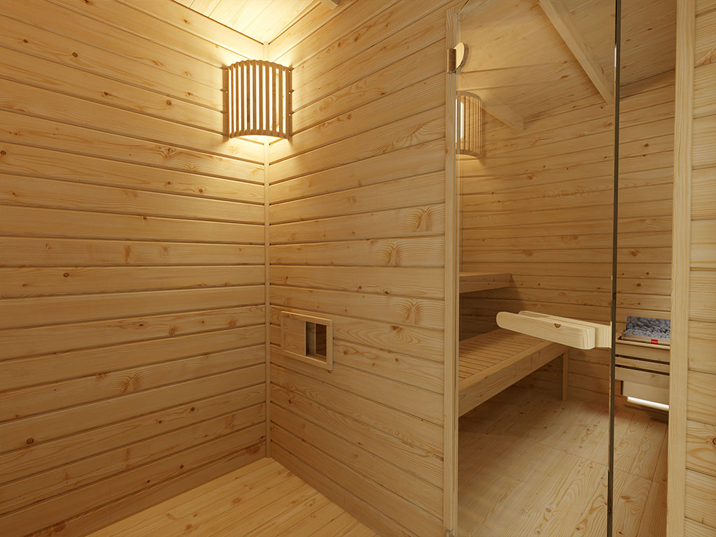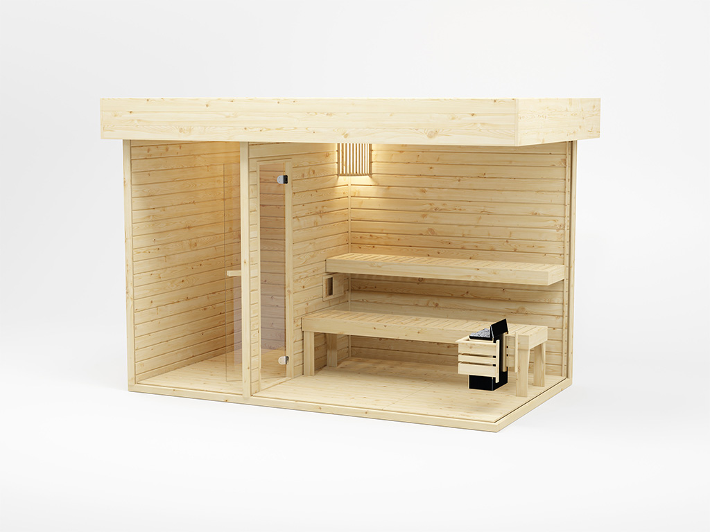 Lieferumfang: | 2 Liegen, 2 Kopfstützen, Ofenschutz, 2 Saunaleuchten, Dachpappe, 9kW Saunaofen, integrierte Steuerung, Steine |