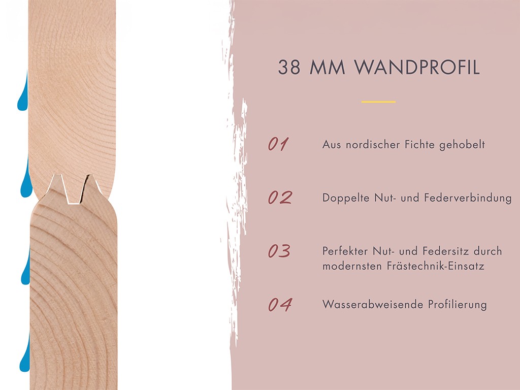 - Bodenrost aus fußwarmem Fichtenholz: für angenehmes Auftreten innerhalb und außerhalb der Sauna.