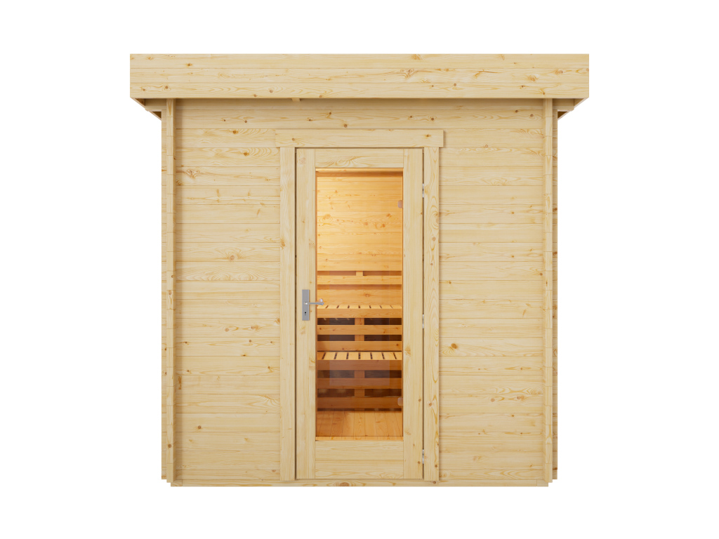 Die hochwertig gearbeitete Sauna zeichnet sich durch ihr ausgesuchtes erstklassiges Fichtenholz aus. Fichte ist besonders langlebig und robust, was für die notwendige Stabilität sorgt. Außerdem überzeugt die Holzart mit geringem Gewicht, einer leichten Verarbeitung und hoher Elastizität. Das naturbelassene Holz sorgt für ein natürliches und zeitloses Aussehen. Außerdem ermöglicht dir das unbehandelte Holz, das Äußere der Gartensauna ganz nach deinen eigenen Wünschen zu gestalten.