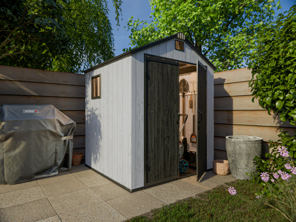 Klein, aber fein – dieses Gerätehaus bietet ausreichend Stauraum, ohne dabei viel Platz im Garten einzunehmen. So kannst du deine Geräte ganz leicht witterungsgeschützt und diebstahlsicher verstauen. Gerätehäuser aus Polypropylen (PP) bieten eine langlebige und praktische Lösung zur Aufbewahrung von Gartengeräten und Zubehör. Der robuste Kunststoff zeichnet sich durch hohe Stabilität und Widerstandsfähigkeit gegenüber Umwelteinflüssen aus, ist witterungsbeständig gegen Feuchtigkeit und UV-Strahlung, formstabil auch bei Temperaturschwankungen sowie besonders pflegeleicht. Dank seiner widerstandsfähigen Konstruktion, häufig ergänzt durch doppelwandige Elemente, eignet sich ein PP-Gerätehaus ideal als zuverlässiger Stauraum im Garten.