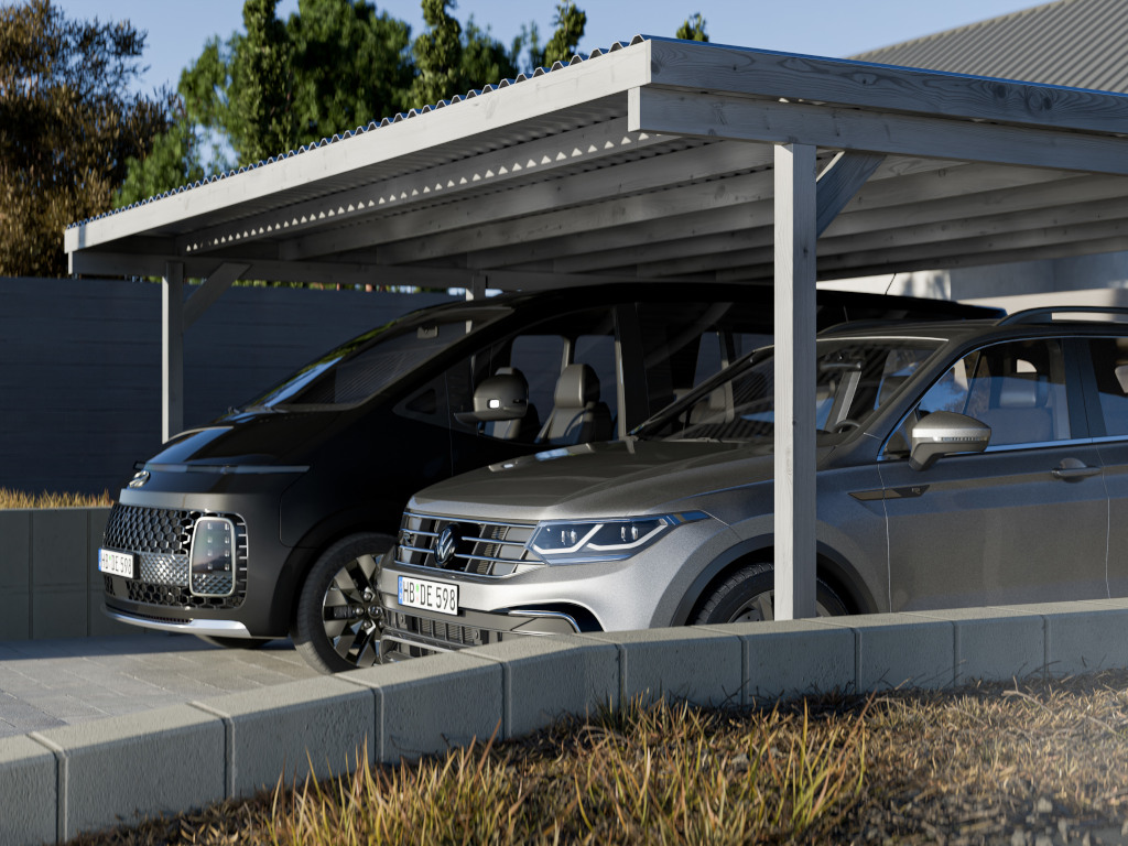 Holz-Doppelcarport SmartCover KDI grau, Kiefer