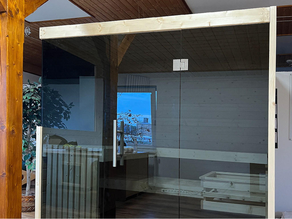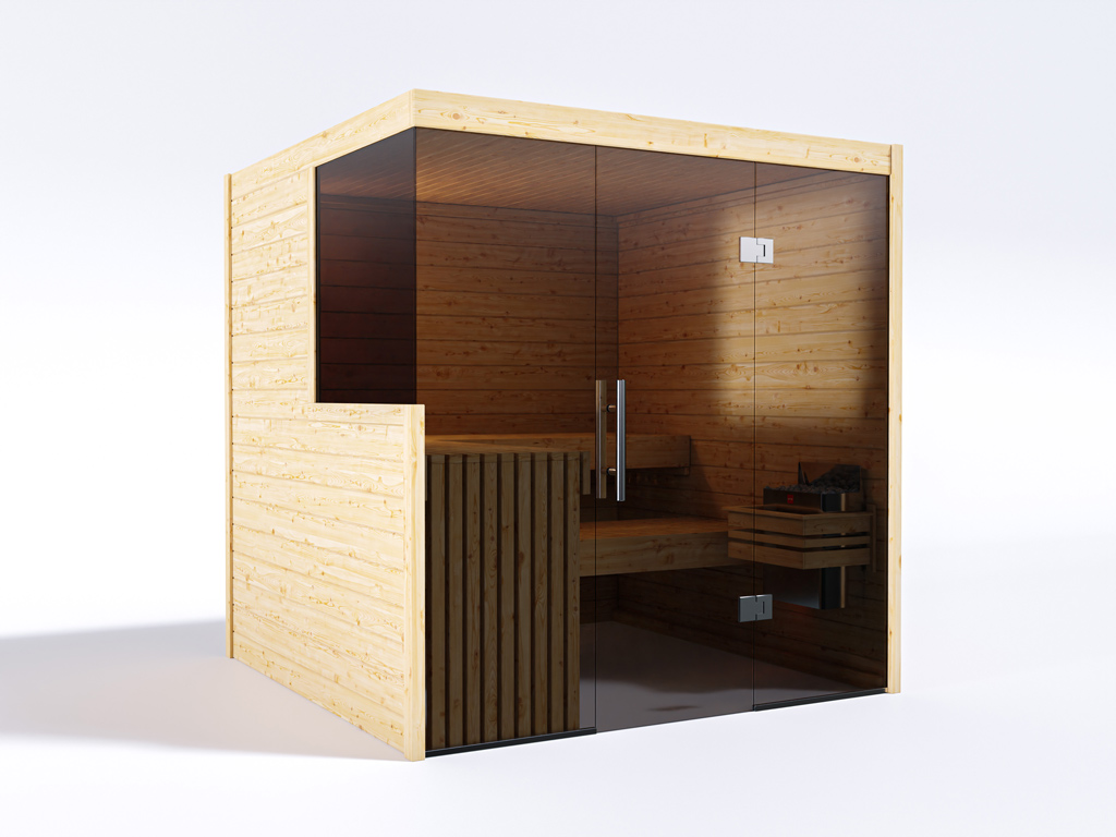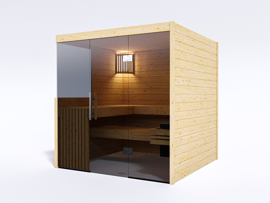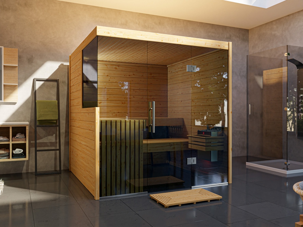 Innensauna Massivsauna Nova Graphit Ganzglastür