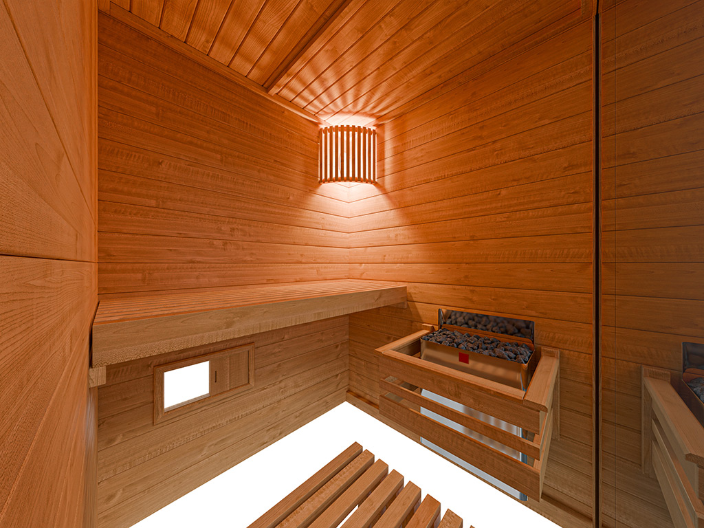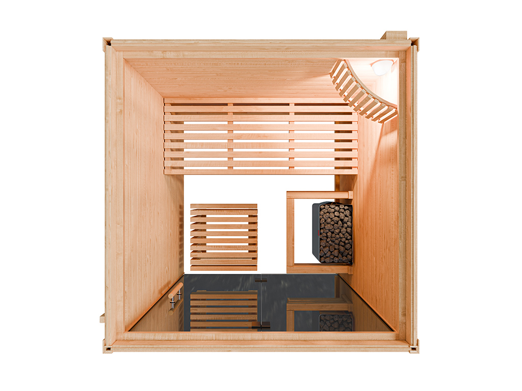 - Bodenrost aus fußwarmem Fichtenholz: für angenehmes Auftreten innerhalb und außerhalb der Sauna.