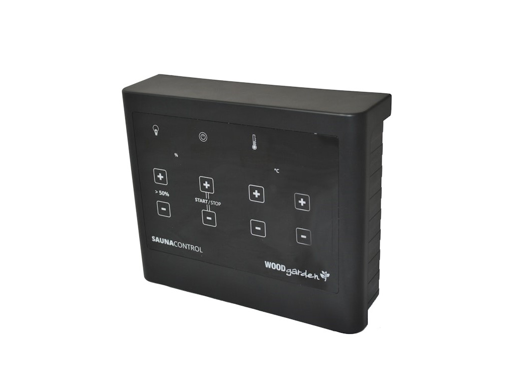 Diese Innensauna wird mit Saunaofen und einer externen Steuerung geliefert. Die Anbringung des Steuergerätes erfolgt an der Außenseite der Sauna. Ganz komfortabel kann somit die Saunasteuerung von außen erledigt und die Temperatur exakt bestimmt werden. Zusätzlich verfügt das Steuergerät über eine Anschlussstelle, über die ein weiteres elektrisches Gerät bedient werden kann.