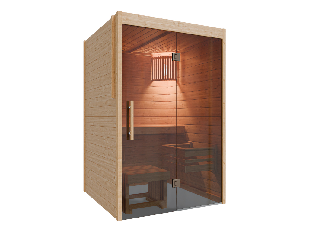 Dieses Saunamodell – eine System- bzw. Elementsauna – zeichnet sich durch seine besondere Sandwich-Bauweise aus, d. h., die Wandelemente bestehen aus einzelnen Schichten. Die bereits vorgefertigten Wandelemente aus Fichte ermöglichen einen schnellen Aufbau innerhalb weniger Stunden. Mit einer Wandstärke von 28 mm sind Systemsaunen optimal isoliert und somit besonders energiesparend. Wegen der sehr gut gedämmten Elemente heizt sich die Systemsauna extra schnell auf.