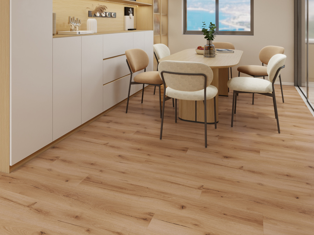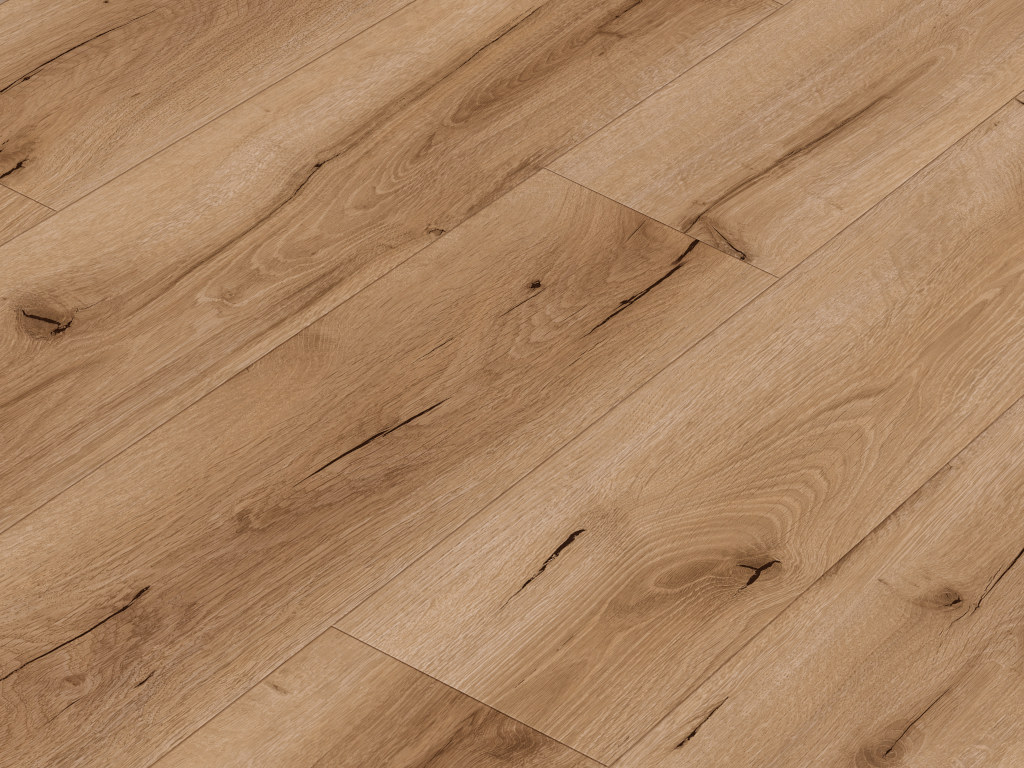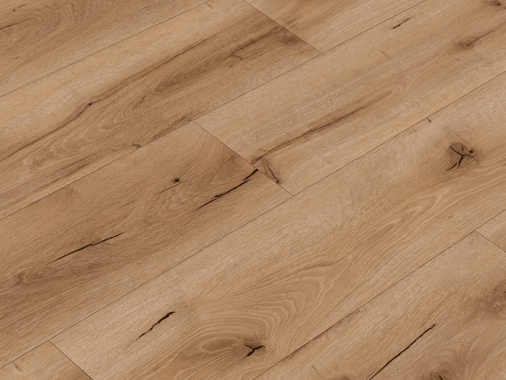 Die typische Eichenholzmaserung des Dekors strahlt zeitlose Klasse und behagliche Wärme aus. Der Landhausdielenlook bringt mit seinem natürlich wirkenden 1-Stab-Design südliches Flair in dein Zuhause und schafft eine Atmosphäre voller Ruhe und Gemütlichkeit. Durch die fugenlose Optik schmiegt sich Diele perfekt an Diele – für ein ebenmäßiges Gesamtbild, das die Fläche betont.