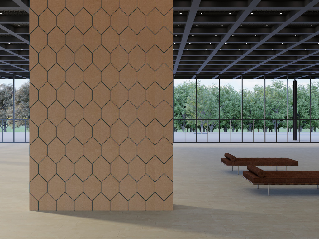 Mit den GROOVY-Wandfliesen aus Kork verleihst du deinen Räumen eine elegante Vintage-Note. Ihr Design, charakterisiert durch CNC-gefräste, geradlinige und schlichte Muster, besteht gänzlich aus postindustriell recyceltem Kork und bildet ein sechseckiges Motiv an der Wand. Die von GROOVY kreierten Retro-Vibes werden durch die natürliche Optik des Korks wunderbar ausgeglichen und es entsteht ein Look, der absolut modern aussieht – und sich auch so anfühlt.