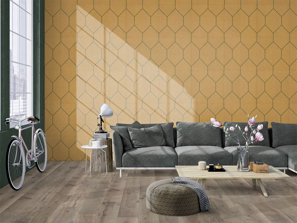 Mit den GROOVY-Wandfliesen aus Kork verleihst du deinen Räumen eine elegante Vintage-Note. Ihr Design, charakterisiert durch CNC-gefräste, geradlinige und schlichte Muster, besteht gänzlich aus postindustriell recyceltem Kork und bildet ein sechseckiges Motiv an der Wand. Die von GROOVY kreierten Retro-Vibes werden durch die natürliche Optik des Korks wunderbar ausgeglichen und es entsteht ein Look, der absolut modern aussieht – und sich auch so anfühlt.
