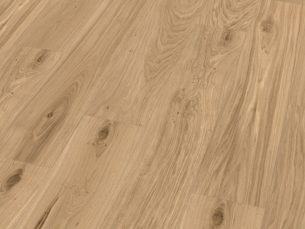 Die Dielen haben eine Breite von 194 mm, eine Länge von 1164 mm und sind 8,50 mm stark. Mithilfe der Klickverbindung kann der Boden problemlos schwimmend verlegt werden. Der Bodenbelag entspricht der Nutzungsklasse 23 und ist damit für stark frequentierte Flächen im privaten Bereich geeignet, z. B. für Treppenflure oder Eingangsbereiche. In Wartezimmern, Büros oder Boutiquen mit kontinuierlicher Nutzung kann der Boden mit der Nutzungsklasse (NK) 32 im gewerblichen Bereich punkten. Aufgrund des fehlenden Schutzes vor stärkerer Nässe ist die Verlegung in Feuchträumen wie Küche oder Bad nicht zu raten. Die Verlegung über einer Warmwasserfußbodenheizung ist kein Problem.