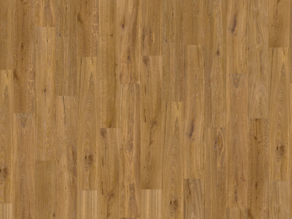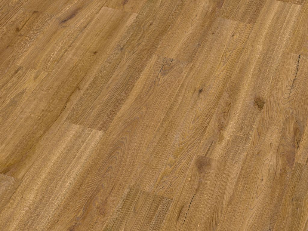 Die markante Eichenholzmaserung des Dekors vermittelt Behaglichkeit und natürliche Lebendigkeit. Landhausdielen besitzen mit ihrer Ein-Stab-Optik einen natürlichen und rustikalen Look, der jeden Raum gemütlich wirken lässt. Die an vier Seiten umlaufende Fase strukturiert das Verlegebild und verleiht ihm ein gleichmäßiges Muster. Aufgrund der strapazierfähigen Lackversiegelung ist die Oberfläche hervorragend gegen Schmutz, Feuchtigkeit und Kratzer gewappnet.