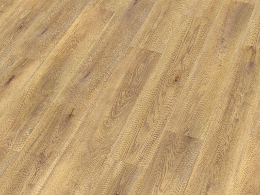 Das Dekor in edler Eichenholzoptik passt perfekt zu nahezu allen aktuellen Einrichtungsstilen. Das natürliche Landhausdielendesign besitzt mit seiner Ein-Stab-Optik einen natürlichen und rustikalen Look, der jeden Raum gemütlich wirken lässt. Die 4-seitig umlaufende V-Fuge betont die Dielenoptik. Aufgrund der strapazierfähigen Lackversiegelung ist die Oberfläche hervorragend gegen Schmutz, Feuchtigkeit und Kratzer gewappnet.