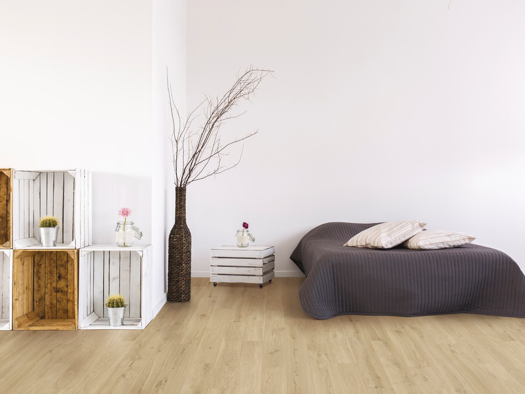Das Dekor in authentischer Eichenholzoptik vermittelt fühlbare Wärme und Behaglichkeit. Landhausdielen sind perfekt für alle, die den authentischen Holzcharakter ihres Bodens hervorheben möchten – für ein rustikales Flair. Die 4-seitig umlaufende V-Fuge betont die Dielenoptik. Aufgrund der strapazierfähigen Lackversiegelung ist die Oberfläche hervorragend gegen Schmutz, Feuchtigkeit und Kratzer gewappnet.