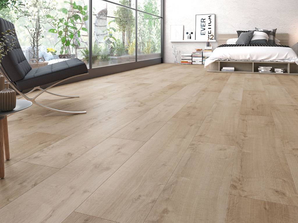 Dank des besonders breiten 280 mm Formats dieser Laminat-Diele lässt sie sich nicht nur schneller verlegen, sie sieht ganz einfach stark aus.