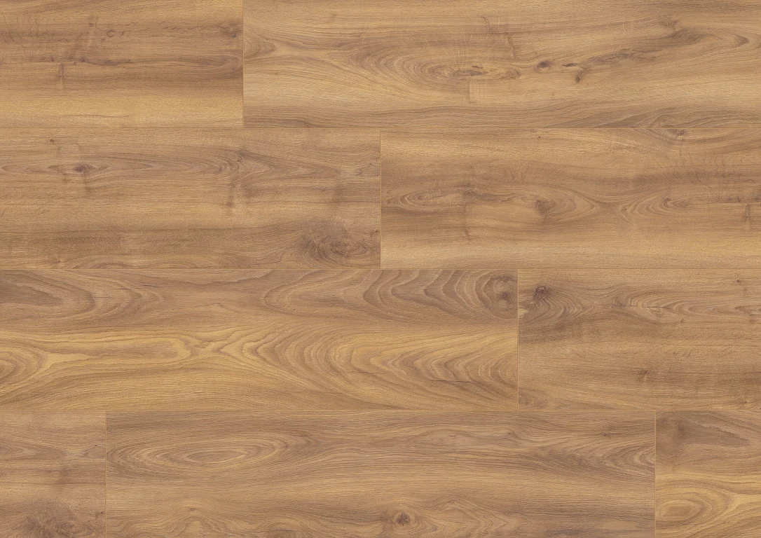 Die markante Eichenholzmaserung des Dekors vermittelt Behaglichkeit und natürliche Lebendigkeit. Landhausdielen besitzen mit ihrer Ein-Stab-Optik einen natürlichen und rustikalen Look, der jeden Raum gemütlich wirken lässt. Die 4-seitig umlaufende V-Fuge betont die Dielenoptik.