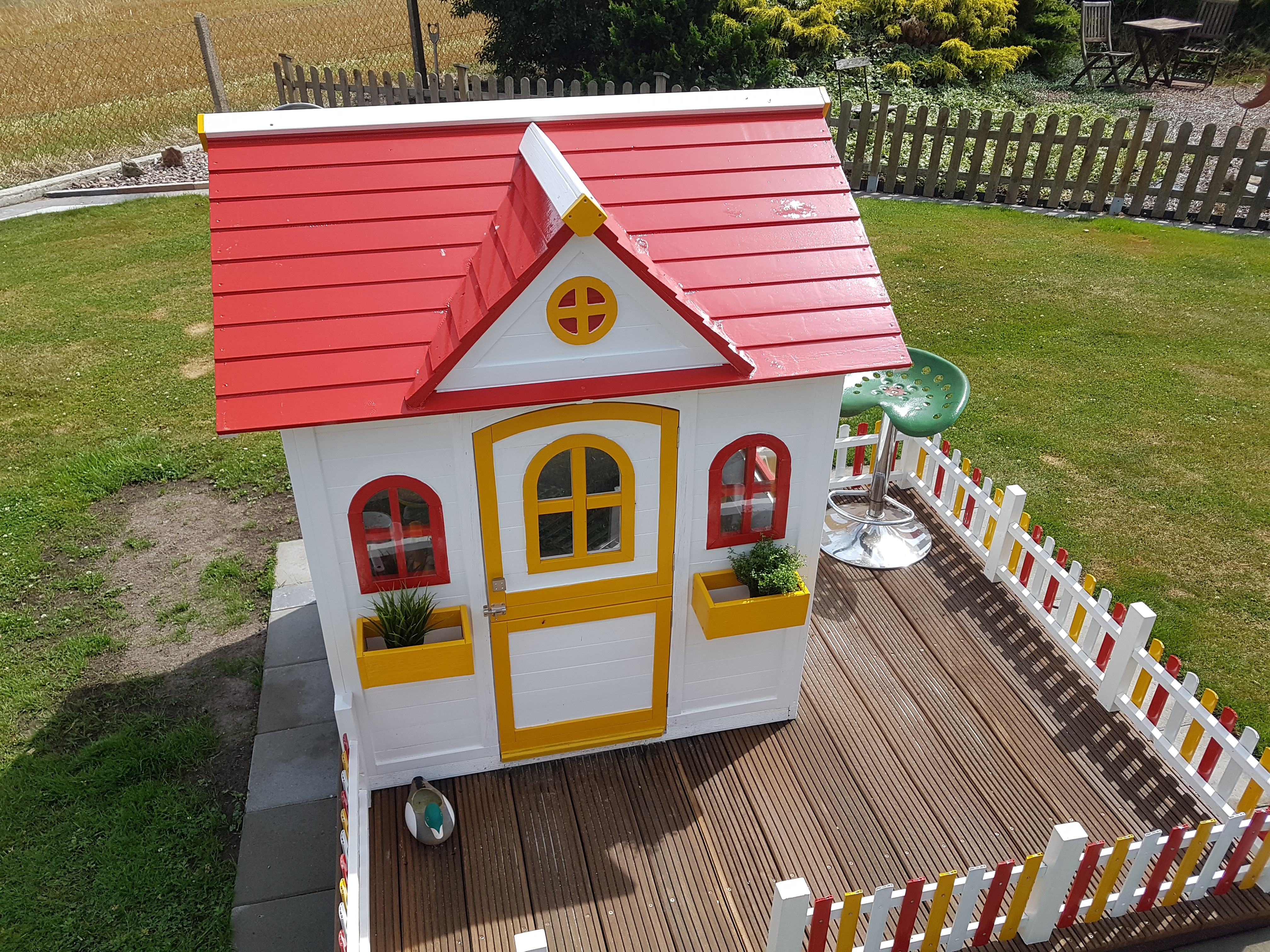 Etwas weniger Platz als Spieltürme mit Anbauten nehmen Spielhäuser in Anspruch. Hier gibt es sehr kleine Modelle, für die du nur etwa 1,10 m² einplanen musst. Natürlich stehen auch größere Varianten zur Verfügung – diese benötigen dann entsprechend mehr Platz.