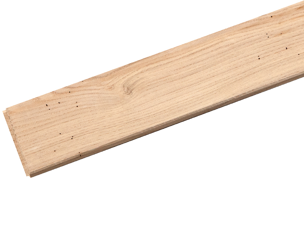 Die an vier Seiten umlaufende Fase strukturiert das Verlegebild und verleiht ihm ein gleichmäßiges Muster. Die unbehandelte Oberfläche bietet sich an, sie nach Belieben zu ölen, zu lackieren oder natürlich zu belassen.