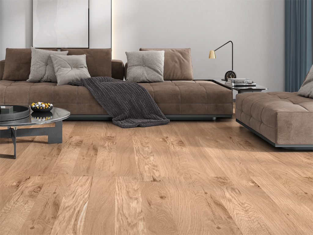 Massivholzdielen sind aufgrund ihrer Natürlichkeit und Individualität von reiner und unverwechselbarer Schönheit. Dieser Eichenboden begeistert durch seine klassische und elegante Optik und integriert sich wunderbar in moderne wie traditionelle Einrichtungsstile. Dabei beeindrucken diese Luxusdielen nicht nur optisch. Ein Boden aus Eiche passt sich trockener Luft und höherer Luftfeuchte flexibel an.