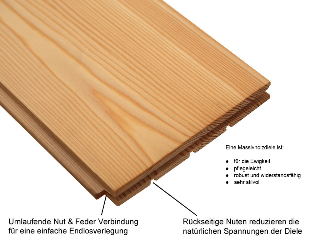 Dieser Artikel ist nicht feuchtraumgeeignet und sollte daher nicht in Küchen und Bädern verlegt werden. Massivholzdielen sind grundsätzlich für die Verlegung über einer Warmwasserfußbodenheizung geeignet. Bei einer Dielenstärke von über 20 mm wird die Verwendung jedoch nicht empfohlen, da die Wärmeleitfähigkeit beeinträchtigt wird und die Effizienz der Heizung sinken kann.