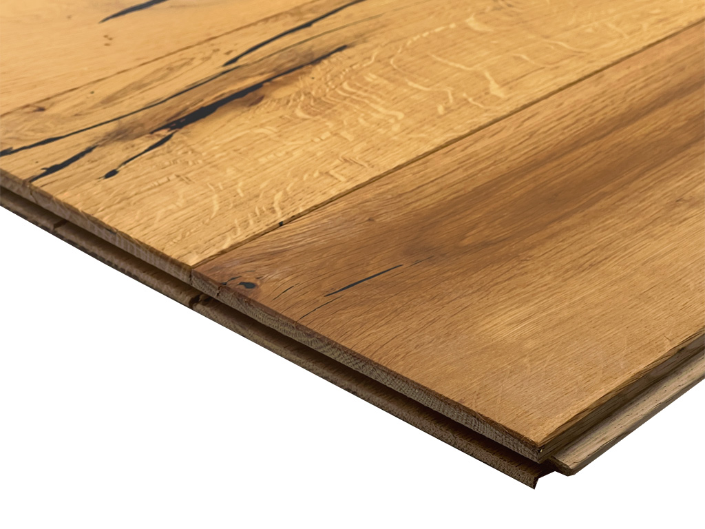 Die Sortierung RM ist eine sehr lebhafte Sortierung, mit Ästen, größerem Splintanteil. Natürliche Farbunterschiede und vereinzelte Pinholes (Wurmlöcher = kleine schwarze Punkte auf der Oberfläche) sind bei dieser Sortierung erlaubt.