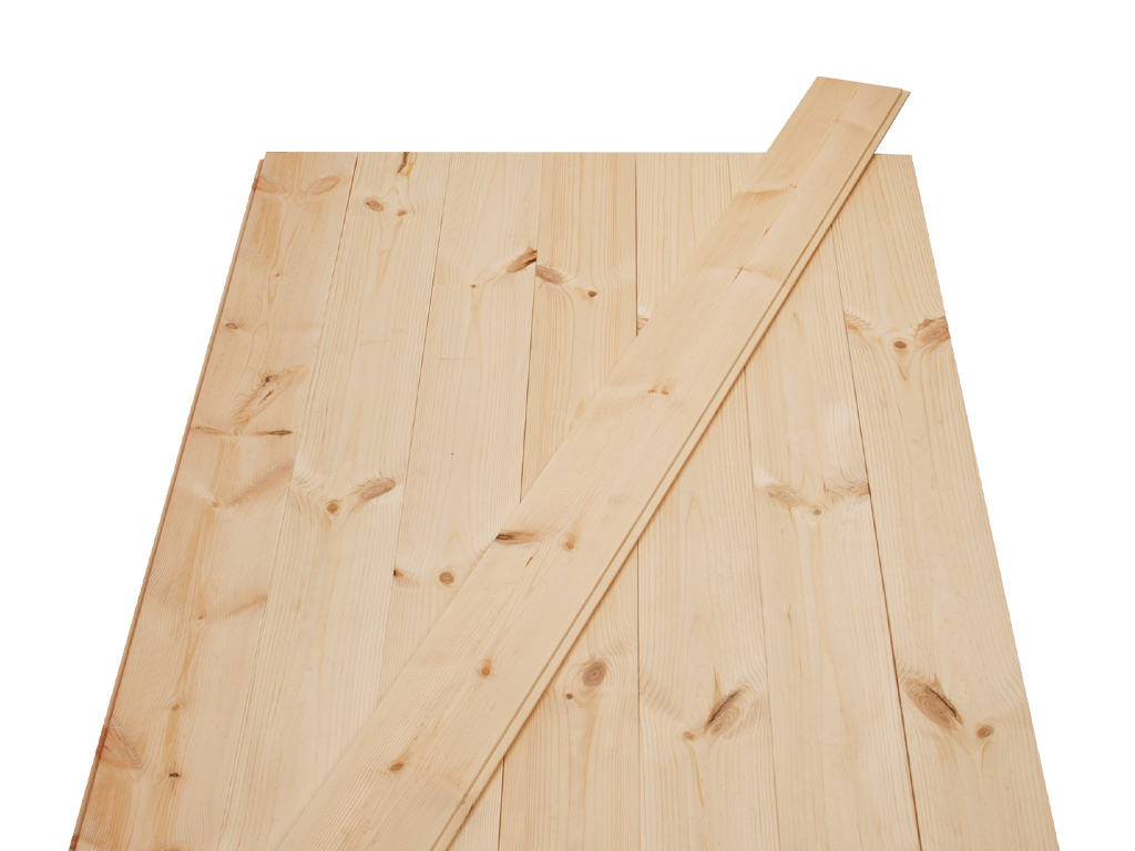 21 mm stark, Fixlänge 205 cm, 14,5 cm breit, Nut & Feder, umlaufend gefast