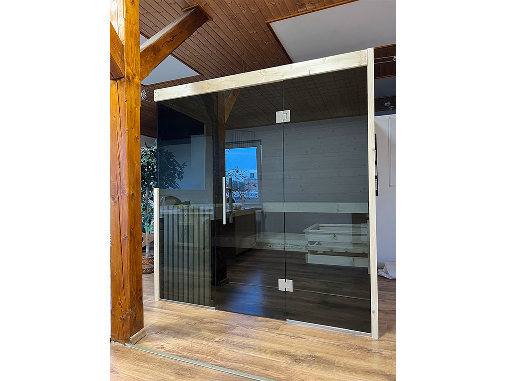 Massivholzsauna Nova mit 9kW Bio-Kombiofen und ext. Steuerung
