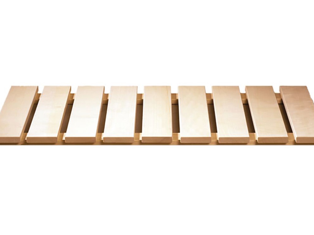 Bodenrost aus fußwarmem Fichtenholz: für angenehmes Auftreten innerhalb und außerhalb der Sauna.