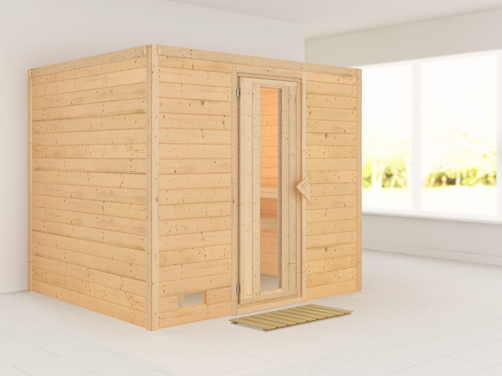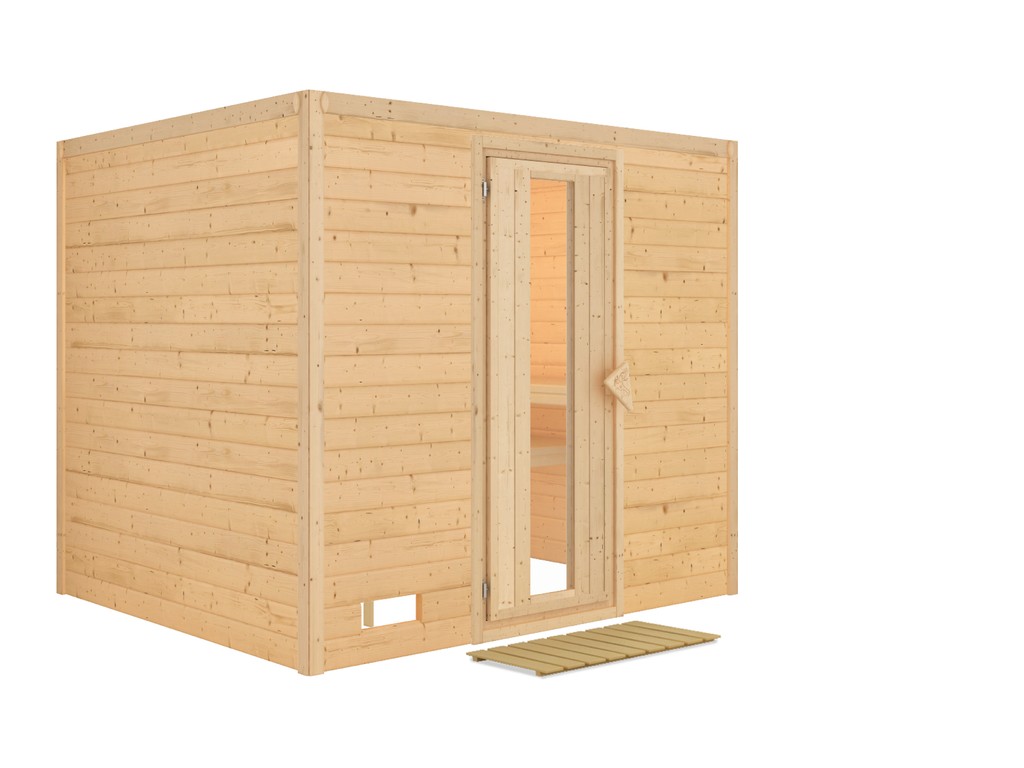 Massivholzsauna Sonara Holztür mit Isolierglas