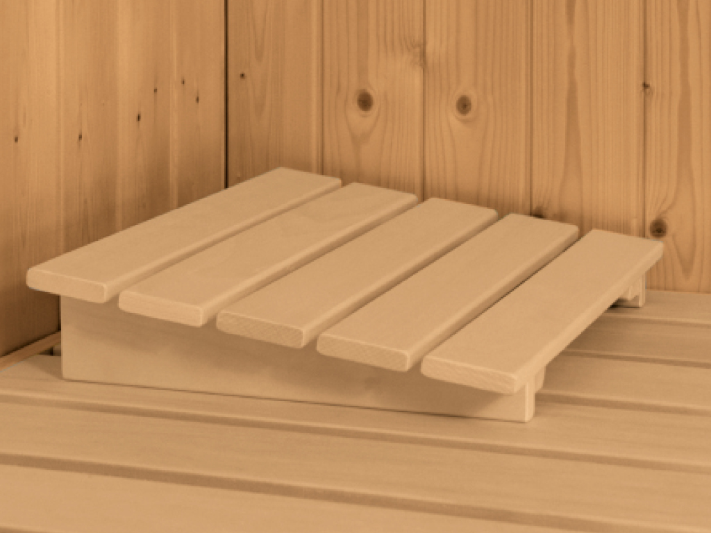 Bodenrost aus fußwarmem Fichtenholz: für angenehmes Auftreten innerhalb und außerhalb der Sauna.