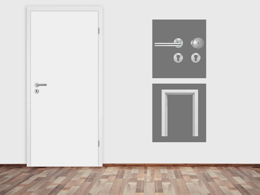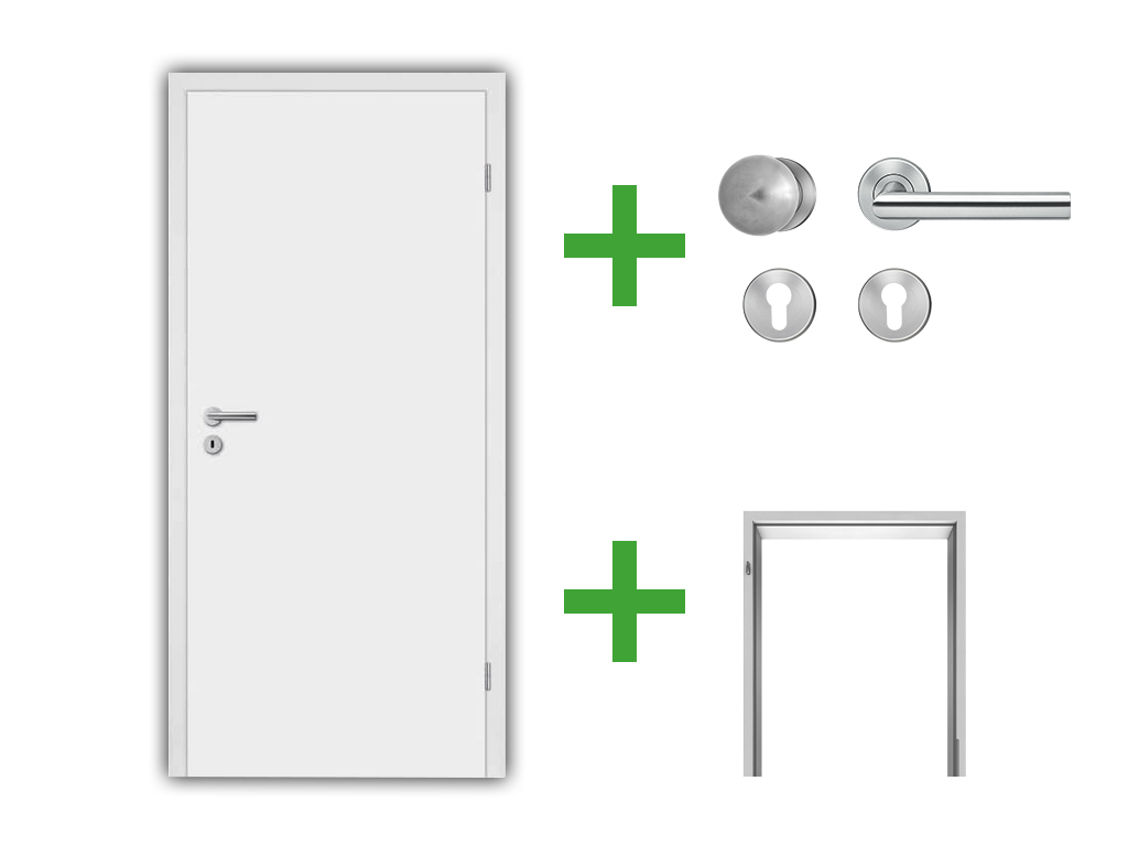Mosel Wohnungseingangstür Set Alba Weißlack 9010 - Türblatt, Zarge, Drückergarnitur