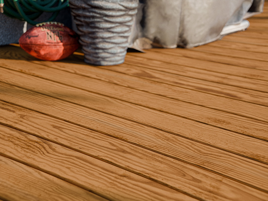 Diese 27 mm starken Terrassendielen werden aus Kiefer hergestellt.