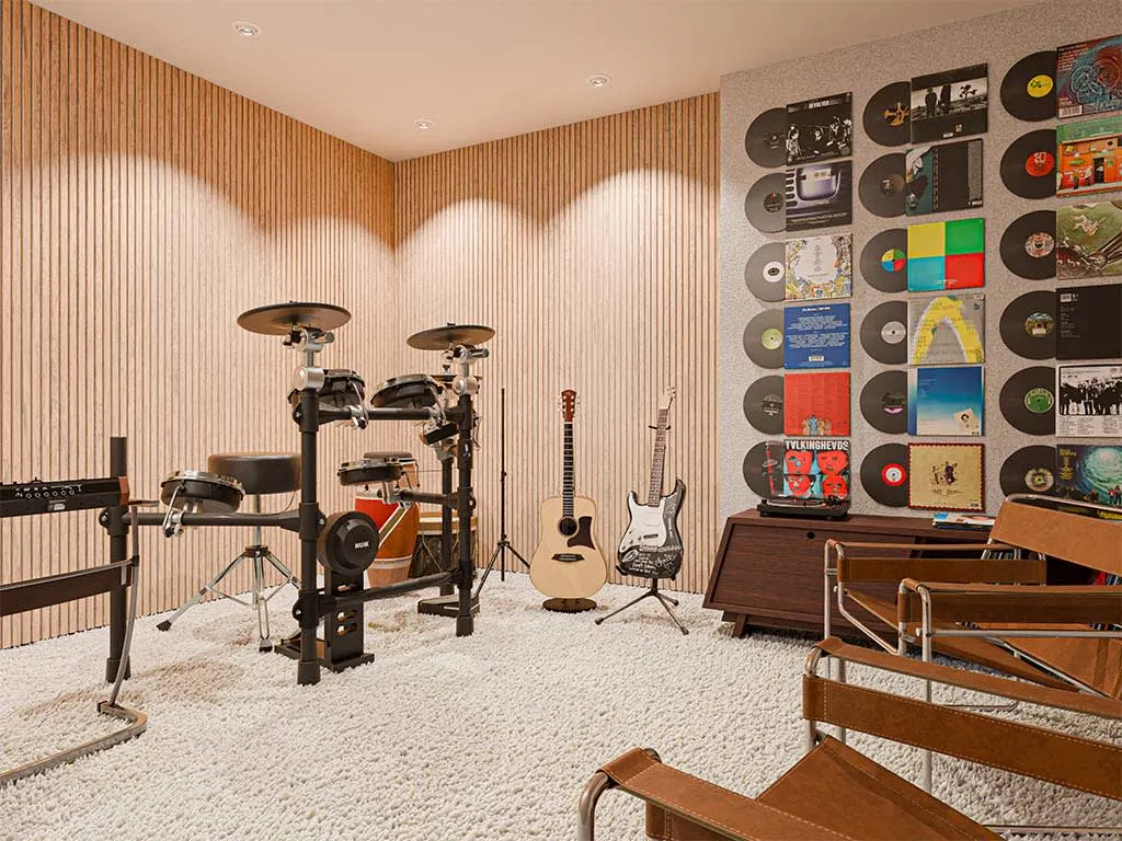 Die Akustikpaneele werden als ganze Platten geliefert, was die Installation denkbar einfach macht – sie können im Handumdrehen an Wänden oder Zimmerdecken montiert werden. Lege zunächst fest, in welcher Ausrichtung du die Paneele anbringen möchtest und kürze sie bei Bedarf passend. Anschließend an die Wand schrauben oder kleben – fertig!