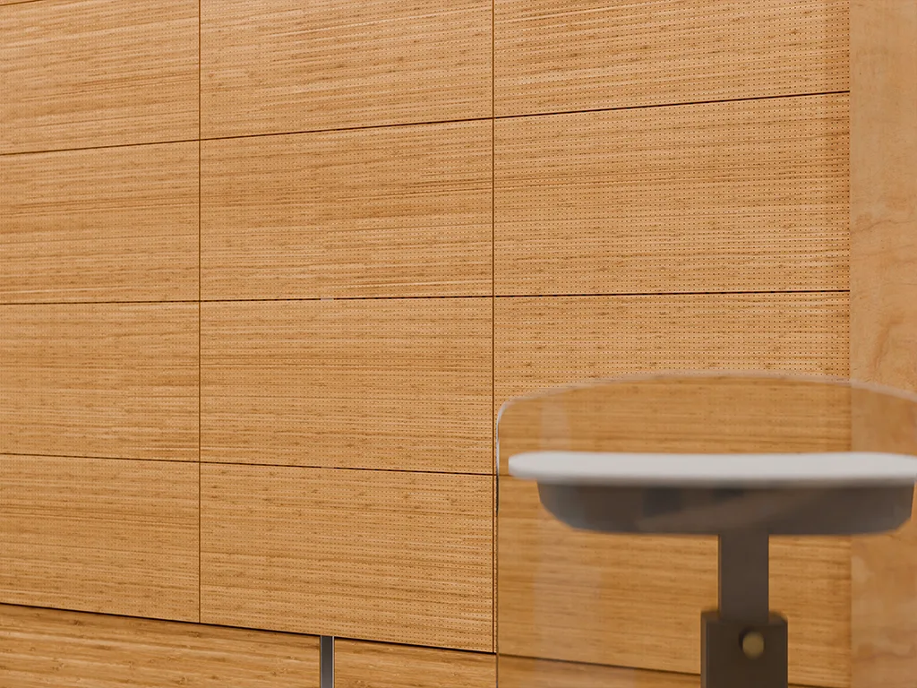 Um einen besseren Klang im Raum zu schaffen, kannst du Akustikpaneele an deinen Wänden oder an der Decke befestigen. Die Paneele aus Bambus dämpfen laute Geräusche und sorgen für eine bessere Raumakustik. Neben der Schalldämmung kannst du sie aber auch einfach zur Innengestaltung nutzen. Die Paneele haben eine Trägerplatte aus Holz und geölte braune Lamellen aus Bambus. Achte darauf, dass du die Paneele nicht in der Küche oder im Badezimmer anbringst, da sie sind nicht für Feuchträume geeignet sind.