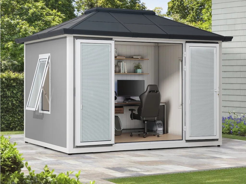 Mit seiner ausgeglichenen Geometrie verleiht das Walmdach deinem Gartenhaus eine ganz besondere Eleganz. Aber nicht nur in der Ästhetik überzeugt das Walmdach, auch die herausragende Stabilität spricht für diese Dachform. Eine geringere Angriffsfläche für Wind und Sturm als beispielsweise bei einem Satteldach erhöht die Lebensdauer dieses Daches. Somit kannst du dich besonders lange an diesem schmucken Gartenhaus erfreuen.