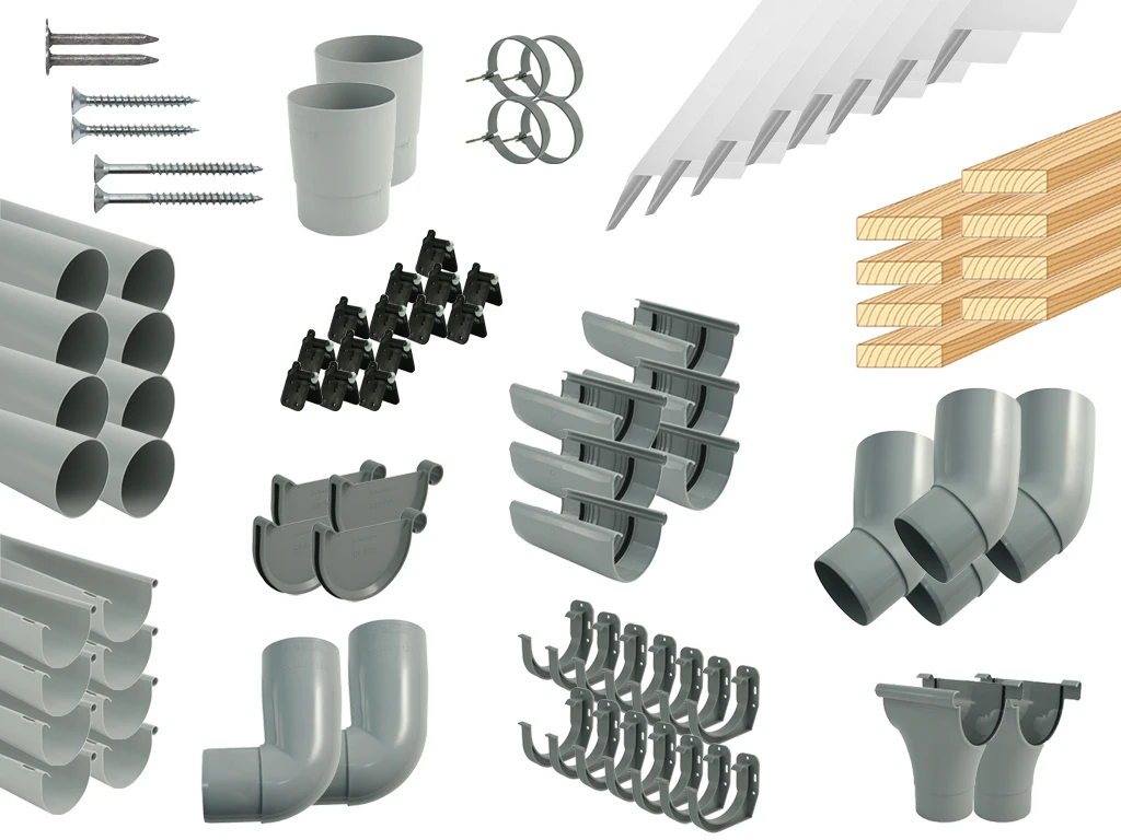 Das Dachrinnenset ist ausgelegt auf Gartenhäuser mit einem Satteldach und erhältlich in verschiedenen Längen (06–12 Meter).