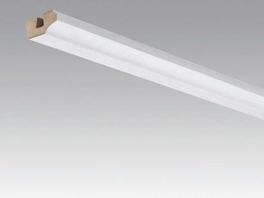 Für einen sauberen und modernen Deckenabschluss ist die Deckenabschlussleiste Polar weiß die ideale Wahl. Gefertigt aus Holz, kombiniert sie mit ihren Maßen von 38 x 19 mm (B x H) und einer Länge von 238 cm ein schlankes Profil mit hoher Stabilität für einen perfekten Wand-Decke-Übergang.
