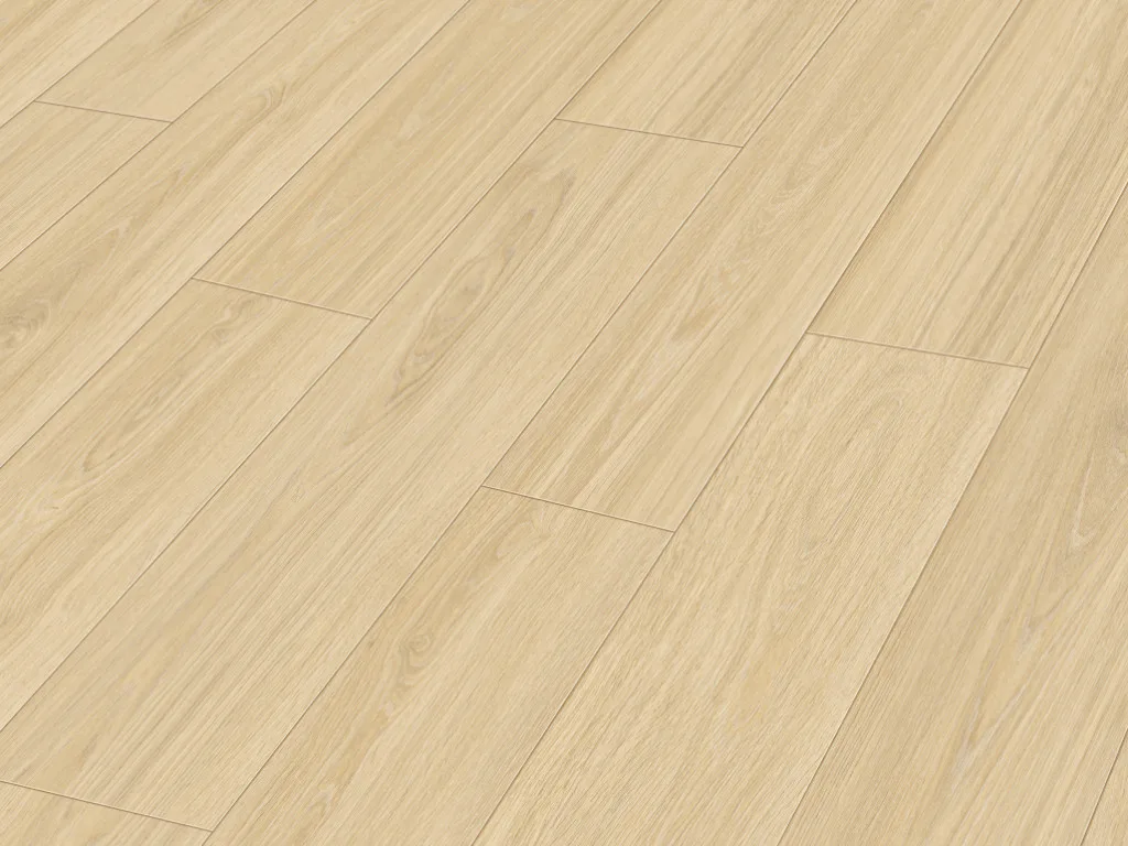 Die Stärke dieses Bodens beträgt 8 mm. Die Klickverbindung garantiert eine schnelle und leicht zu handhabende, schwimmende Verlegung.