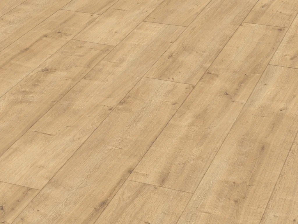 Die rustikal wirkende Landhausdiele betont mit ihrer 1-Stab-Optik den traditionellen Charakter eines echten Holzbodens. Die umlaufende 4-V-Fuge hebt jede einzelne Diele hervor und gibt der Fläche so eine schöne Struktur.