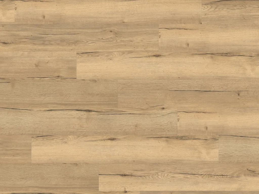 Das Dekor mit typischer Eichenholzmaserung charakterisiert perfekt den Stil der rustikalen Moderne. Landhausdielen besitzen mit ihrer Ein-Stab-Optik einen natürlichen und rustikalen Look, der jeden Raum gemütlich wirken lässt. Die 4-seitig umlaufende V-Fuge der Diele betont den rustikalen Charakter.