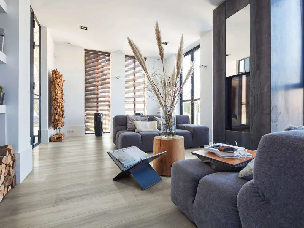 Dieser Designboden ist 6 mm stark. Die Dielen sind im Handumdrehen verlegt–mithilfe der cleveren Klickverbindung Multiclic.