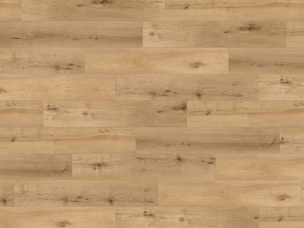 Das Dekor in authentischer Eichenholzoptik vermittelt fühlbare Wärme und Behaglichkeit. Landhausdielen besitzen mit ihrer Ein-Stab-Optik einen natürlichen und rustikalen Look, der jeden Raum gemütlich wirken lässt. Die 4-seitig umlaufende V-Fuge verstärkt den Charakter der Diele und gibt ihr mehr Struktur. Dank der aufwendig gearbeiteten Porenstruktur sind, wie bei echten Holzdielen, selbst feinste Rillen sicht- und fühlbar.