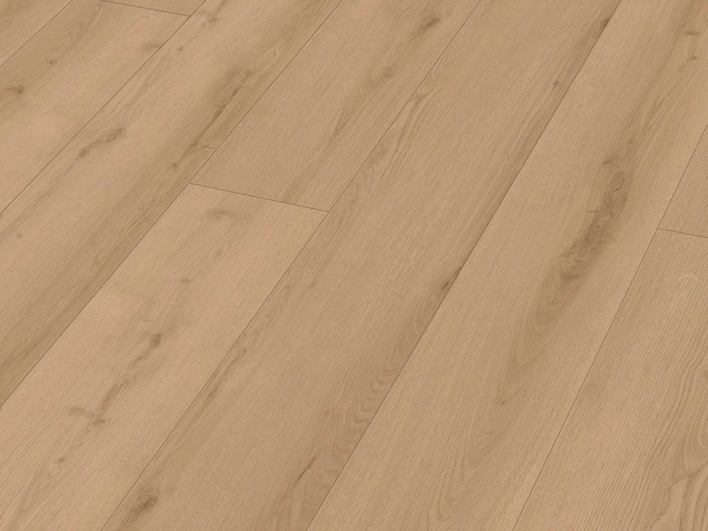Das attraktive Eichenholzdekor fühlt sich in nahezu jedem modernen Einrichtungsstil zu Hause. Landhausdielen besitzen mit ihrer Ein-Stab-Optik einen natürlichen und rustikalen Look, der jeden Raum gemütlich wirken lässt. Die an vier Seiten umlaufende Fase hebt den Dielencharakter besonders hervor. Die Maserung ist der von echtem Holz täuschend echt nachempfunden. Die matte Optik unterstreicht den natürlichen Eindruck.